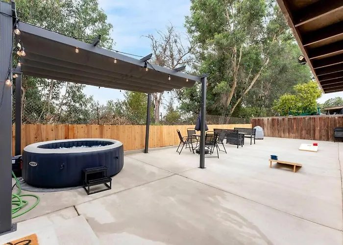 Doté d'un jacuzzi, Villa Urban Retreat Fun Relax Self Check-In Hot Tub Foosball Fire Pit Cornhole est situé à moins de 10 minutes en voiture de Flying Leatherneck Aviation Museum.